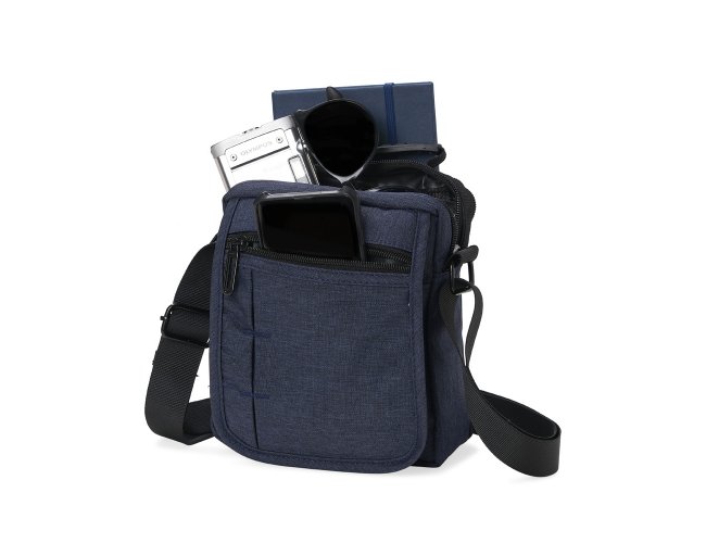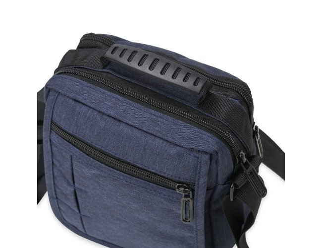 Descrição: Bolsa de ombro em nylon com quatro compartimentos.