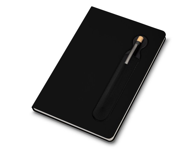 Caderno de anotações com suporte para caneta, capa dura em PU,