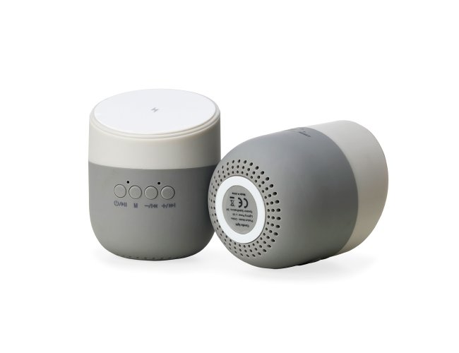 Caixinha de Som bluetooth com carregador por indução. Produzido em material plástico, a caixinha possui antiderrapantes emborrachados na parte inferior, e na área de indução. Para desfrutar do carregamento por indução (sem fio) é fundamental que o celular possua a tecnologia QI – desta maneira é possível carregar o celular posicionando-o sob carregador, sendo necessário apenas conectar o carregador à uma fonte de energia (USB ou diretamente na tomada). A caixinha executa nos modos bluetooth e cartão TF (microSD) Acompanha cabo USB.