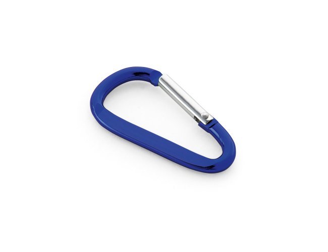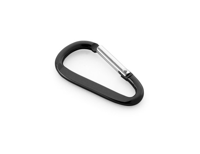 Mosquetão em alumínio com área plana para gravação. 24 x 48 x 4 mm
