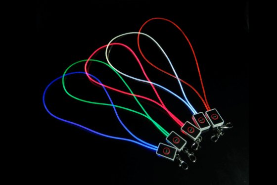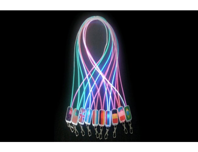 Material Cordão TPU + Caixa ABS + Mosquetão Gravação Silkscreen Área de Gravação Caixa ABS Cores do LED RGB (colorido), Branco, Azul, Vermelho, Verde, Amarelo, Laranja e Rosa Tamanho 76cm Espessura 0,3cm Peso 40 gramas
