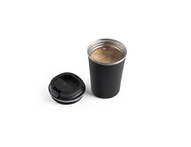 Copo de viagem em aço inox e PP com parede dupla e isolamento a vácuo (térmico).