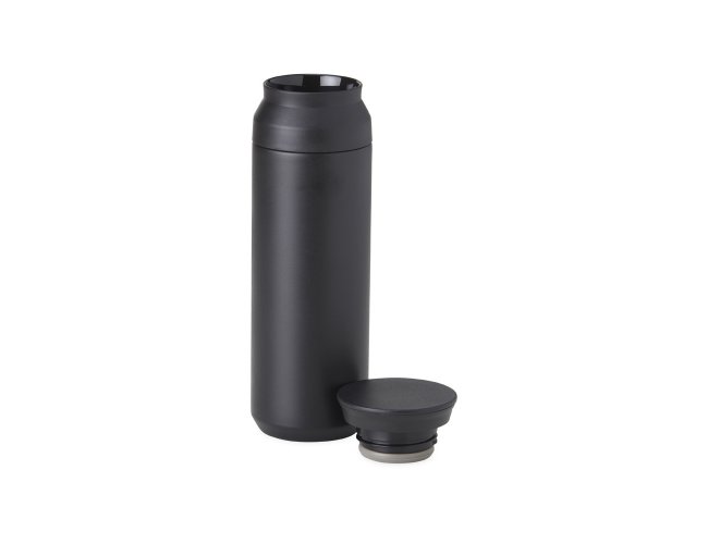 Garrafa térmica feita em inox 304 com parede dupla, capacidade de 470ml. Tampa de abertura dupla.