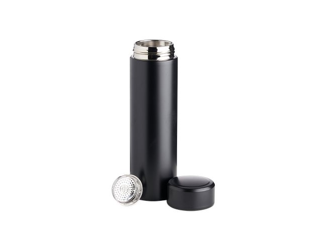 Garrafa térmica 500ml feita em aço inoxidável 304, acompanha infusor de bebidas.