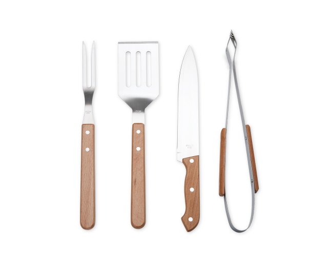 Pegador 33,5 cm x 6,2 cm – Garfo 32,7 cm x 2,6 cm – Faca 32,9 cm x 3,92 cm – Espátula 33 cm x 7,6 cm – Estojo 35,5 cm x 10 cm