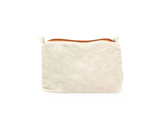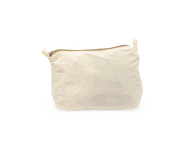 Nécessaire em algodão com zíper, frente e verso liso, com duas alças pequenas para acesso de chaveiro ou gancho.