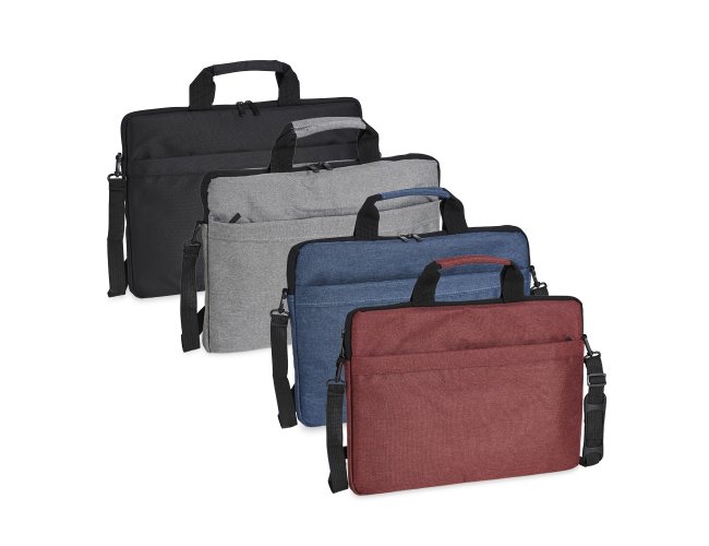 Pasta para notebook 15’6 em poliéster resistente à água com dois compartimentos, sendo o principal para notebook e o outro frontal. Contém interior forrado e almofadado, alça para encaixe em malas de viagem e acompanha alça transversal.