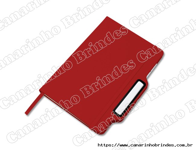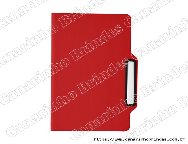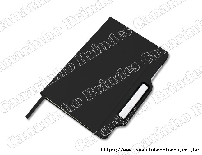 Caderno de anotações com suporte para caneta, capa dura em PU, miolo 80 folhas não pautado na cor branca.