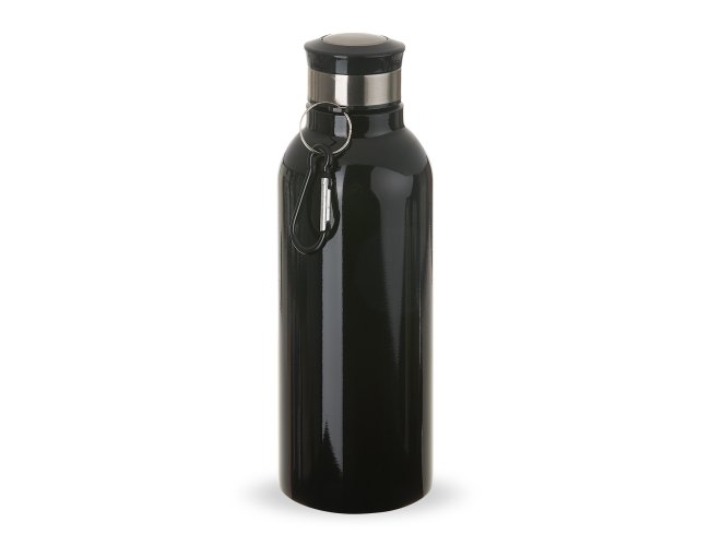 Possui tampa rosqueável e acompanha chaveiro mosquetão.